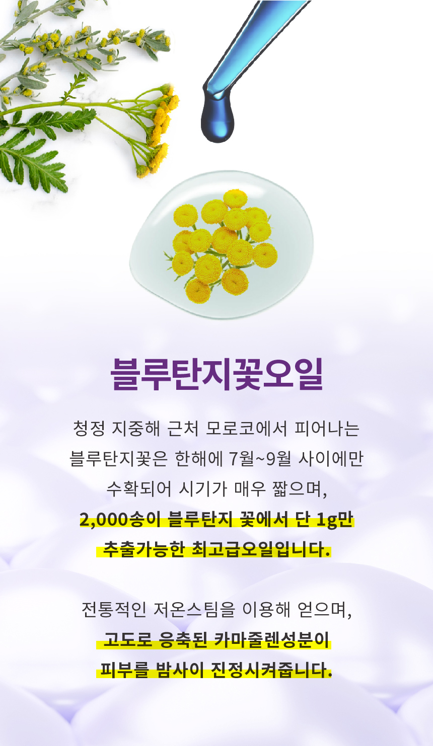 고급 아미노산컴플렉스와 블루탄지오일이 들어가 피부를 편안하게 합니다.