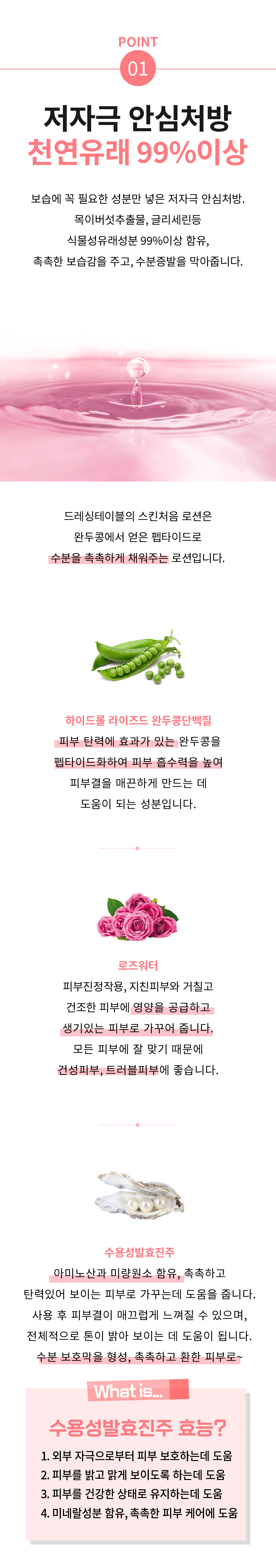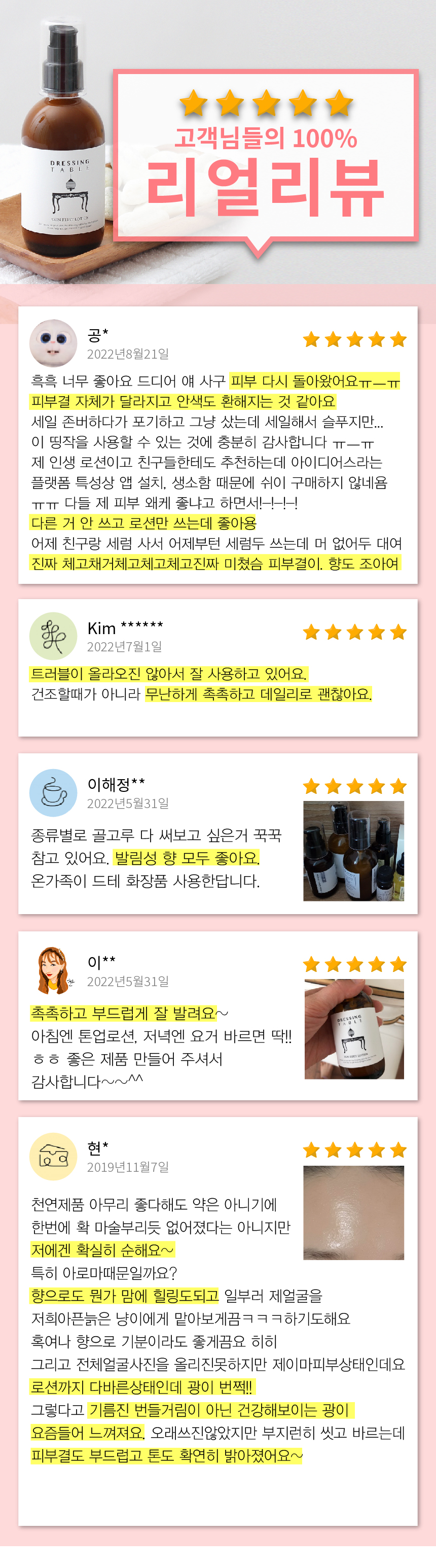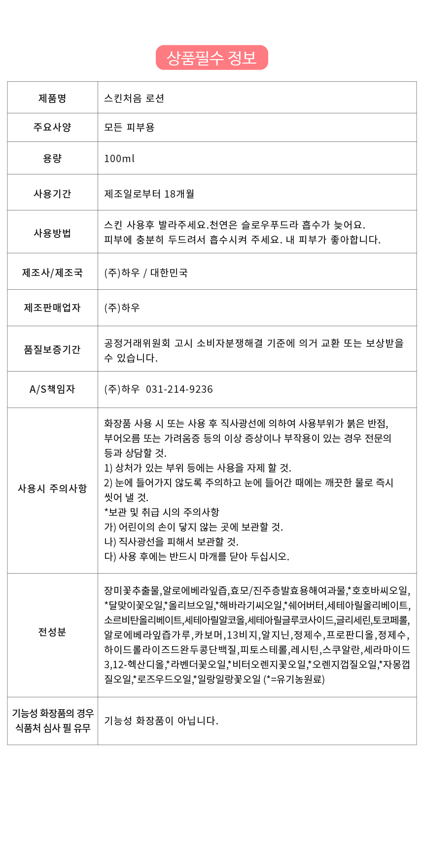 스킨 사용후 발라주세요. 천연은 슬로우푸드라 흡수가 늦어요. 피부에 충분히 두드려서 흡수시켜 주세요. 내 피부가 좋아합니다.