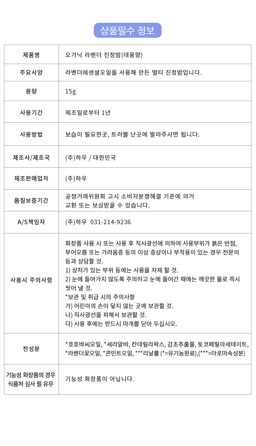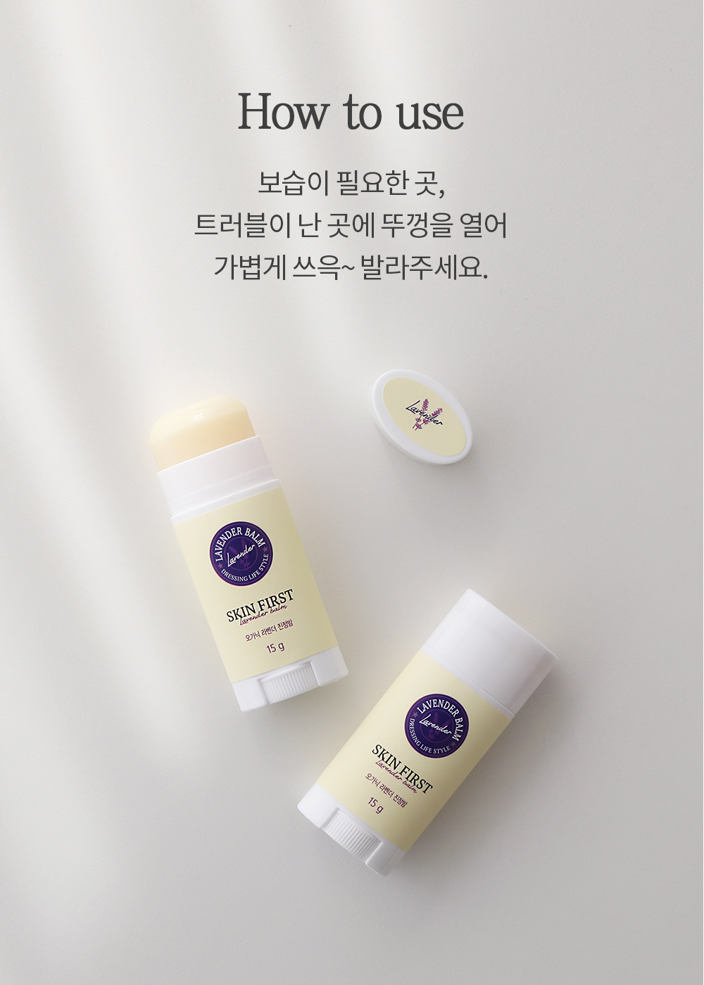 라벤더에센셜오일을 사용해 만든 멀티 진정밤입니다.